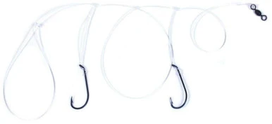 The Sea Striker Blackfish Hi-Lo Rigs are rigged with black Virgina hooks with a crane barrel swivel. Each Sea Striker Blackfish Rig is tied on 40-lb. monofilament and features a pair of top-quality Virginia hooks to ensure positive hookups.